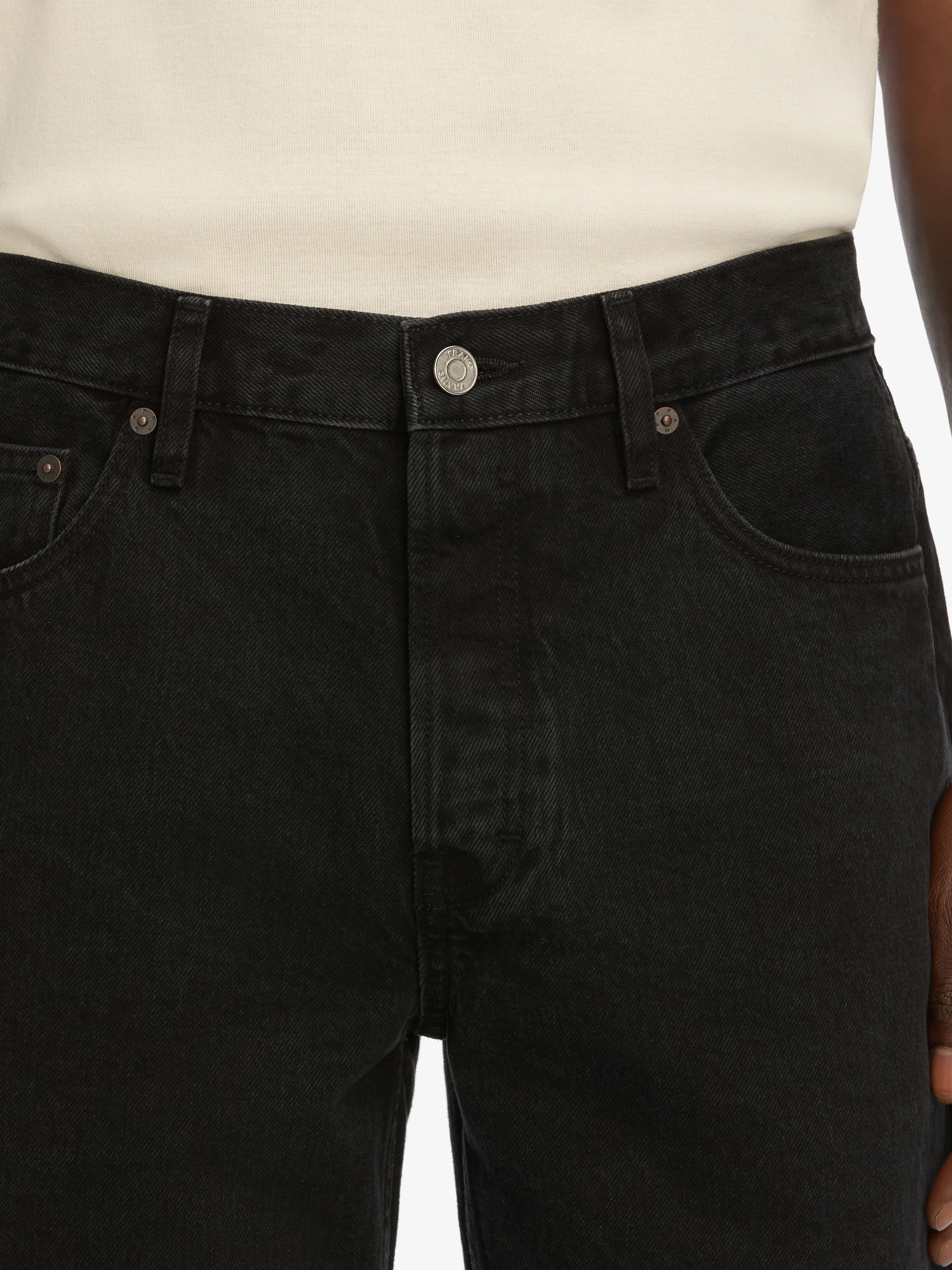 An easy silhouette meets responsible craftsmanship. This jean is cut from regenerative and recycled cotton, finished in a black wash with a lived-in look, subtle destruction at the knee, and relaxed shape made for repeat wear.