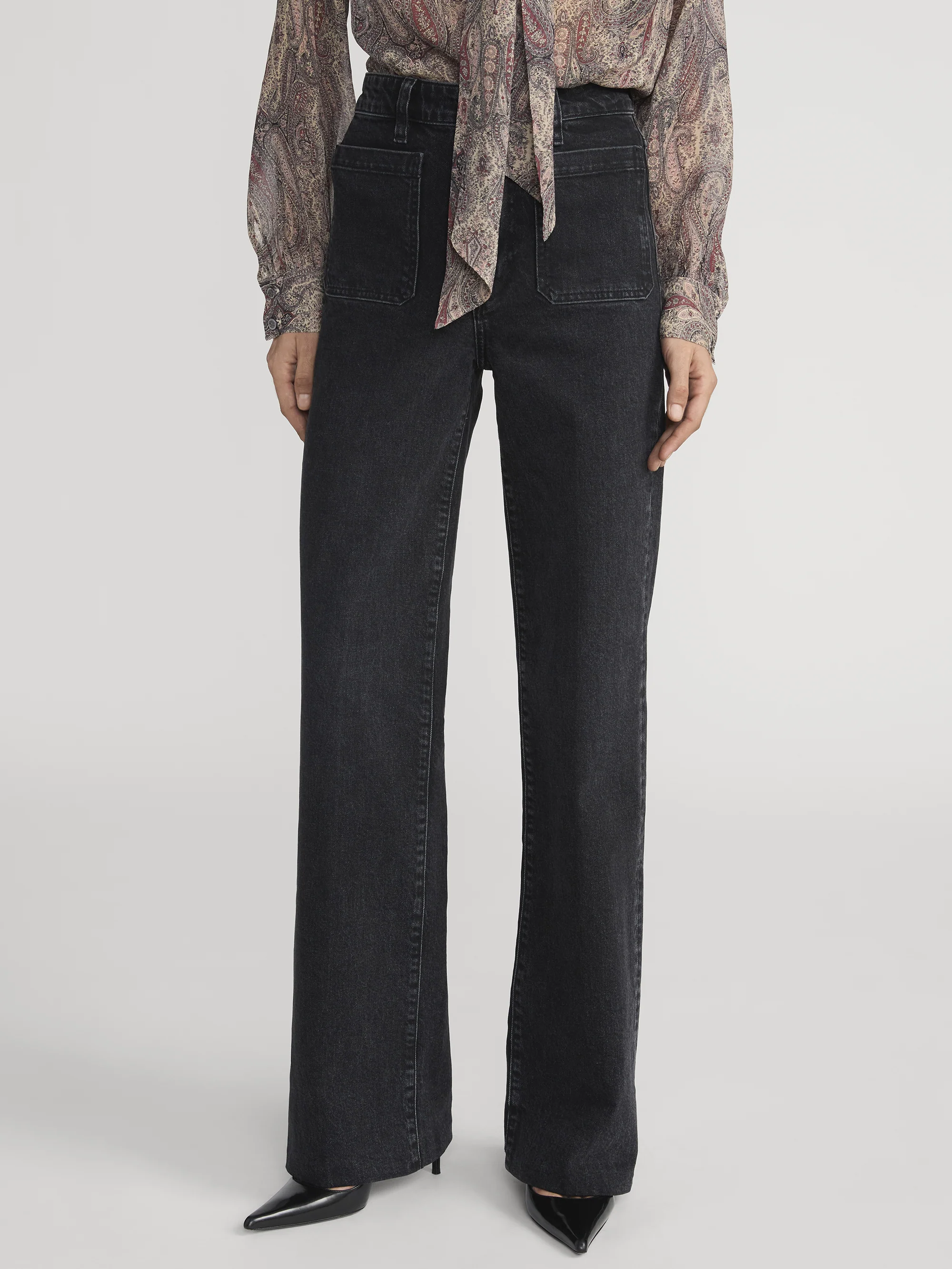 A '70s-inspired, high-rise, wide-leg jean with a sleek silhouette and front patch pockets. Crafted in denim with a hint of stretch for low-key comfort.